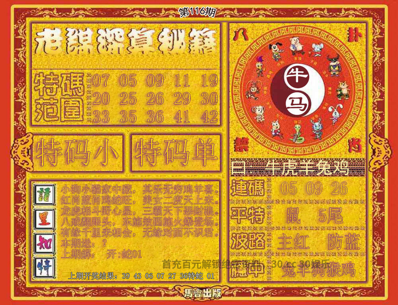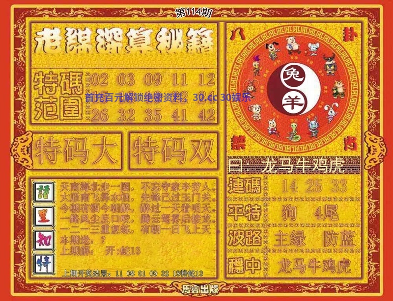 117期:特码预测版/六合独家料/小财神送码/三字联/曾道人玄机字